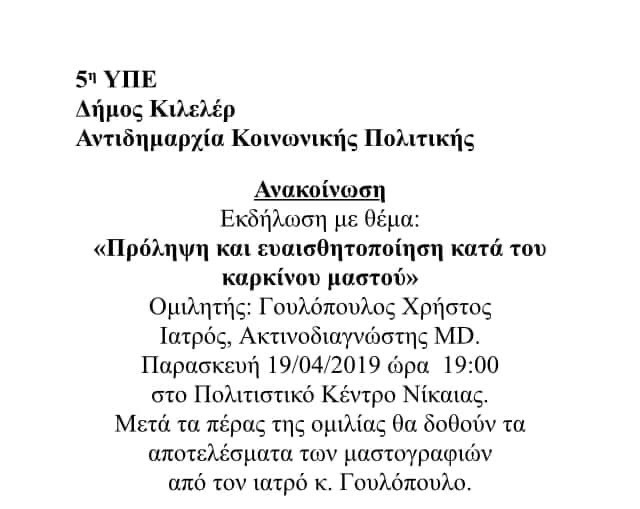 ΗΜΕΡΙΔΕΣ ΓΙΑ ΤΟΝ ΚΑΡΚΙΝΟ ΤΟΥ ΜΑΣΤΟΥ